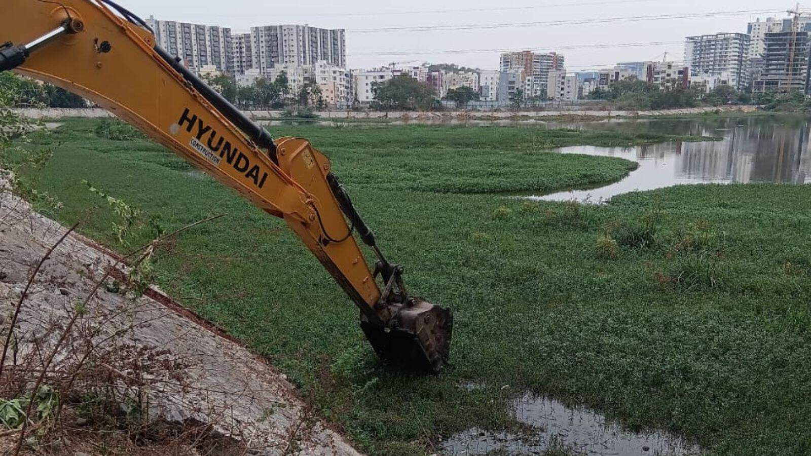 The efforts involve a massive eradication process of water hyacinth, an invasive species of plant that covers the water surface, reducing oxygen content and creating stagnant water in the process. Currently, the clean-up process is underway at Neknampur Chinna Cheruvu and Ambeer Cheruvu in Allwyn Colony, which were filled with heavy growth of plants affecting the flow of water.
