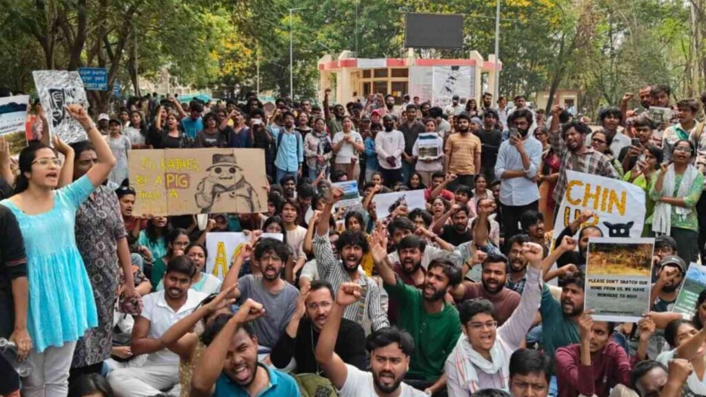 The move sparked large-scale protests from students, residents and environmental activists, who said the area was ecologically sensitive and home to precious wildlife, lakes and diverse flora and fauna. The protests forced the Telangana High Court and later the Supreme Court to take a suo motu case, directing a halt to further tree felling.