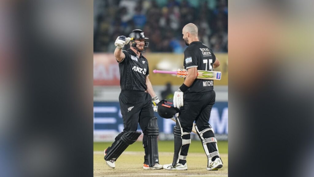 New Zealand also held their ground firm when Harshit Rana (1/52) and Siraj steamed in with the new ball to create immense pressure, reaching 34/1 after the powerplay.