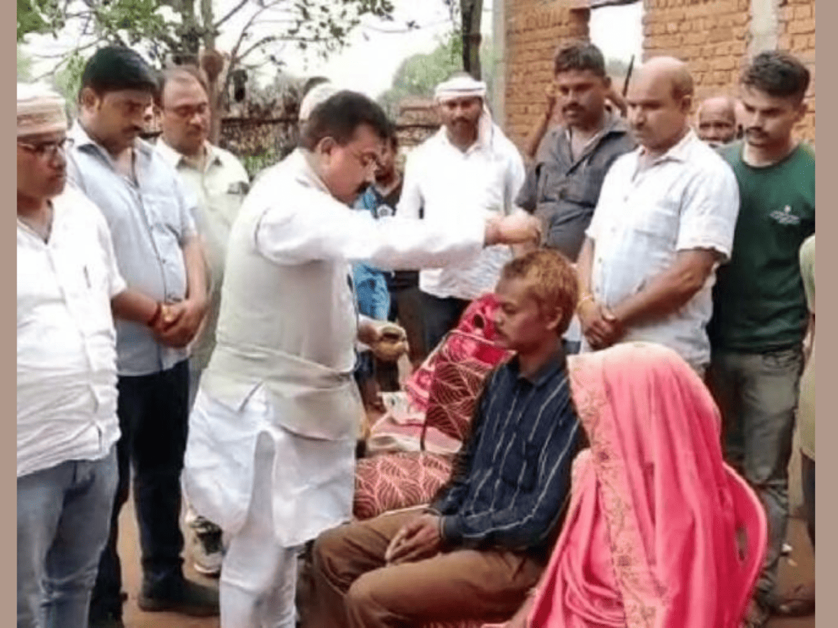 Bhopal: Post “feet wash” episode on camera at Chief Minister Shivraj Singh Chouhan’s residence in Bhopal, the Congress performed “shuddhikaran” (purification) of tribal victim Dashmat Rawat after he returned to his home in Sidhi district.