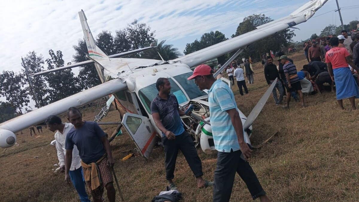 At least six people, including two pilots, were injured when a nine-seater aircraft of India One made an emergency crash landing near Rourkela in Odisha on Saturday afternoon.