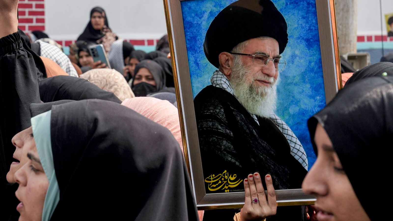 A photograph of Khamenei was placed at the Imambara in the state capital. He was killed in the last week of February. He belonged to the Shia community.