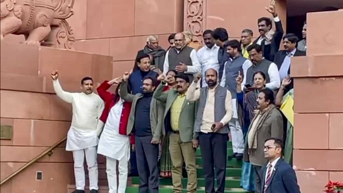Opposition MPs soon after staged a walkout from the House, and came out of the Makar Dwar of Parliament building raising slogans.