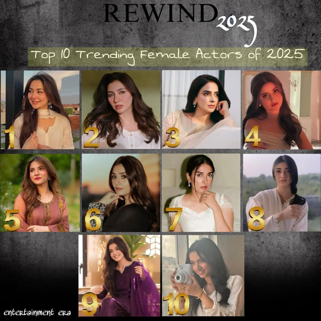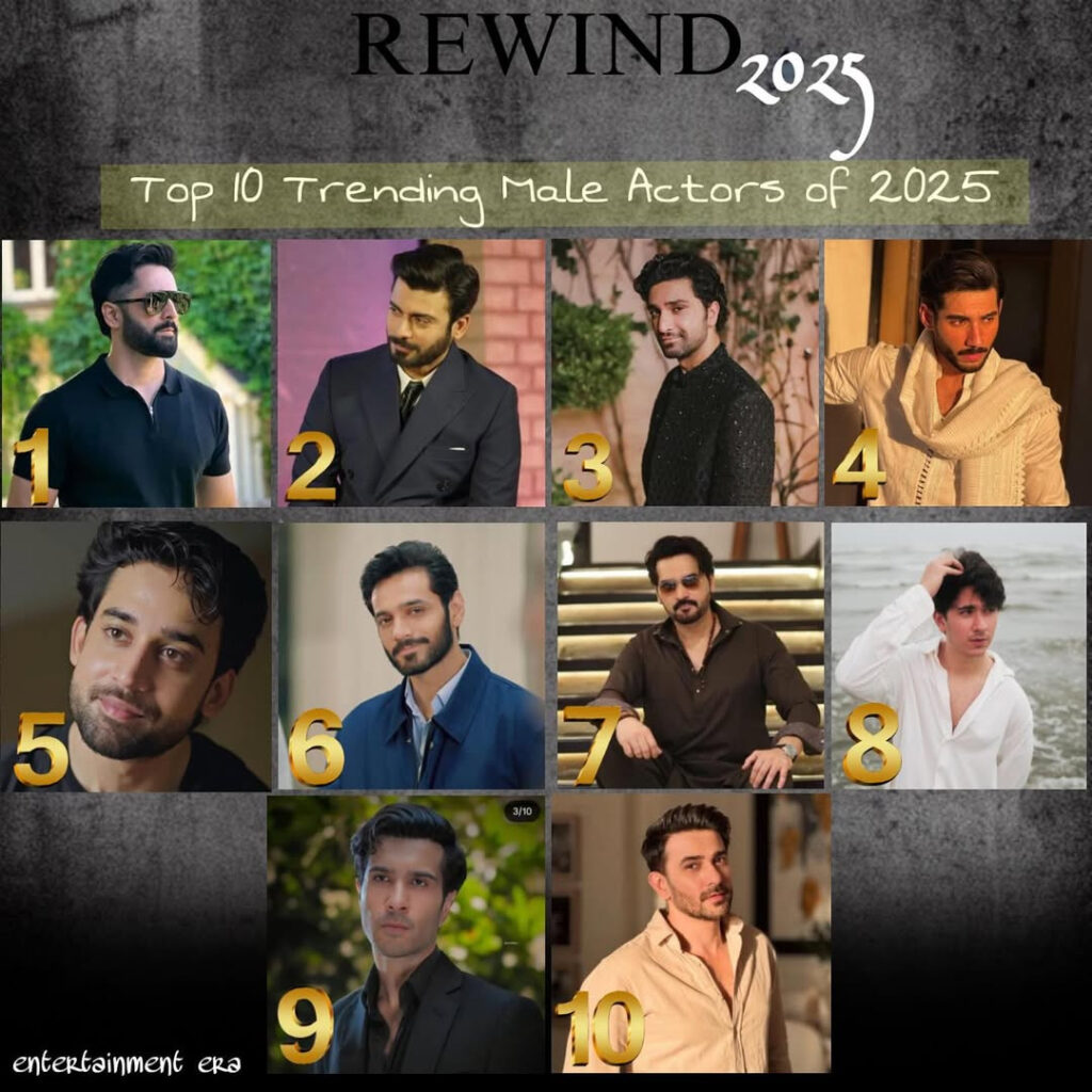 Popular Pakistani entertainment Instagram page Entertainment Era has now released its list of the ‘Top 10 Trending Male and Female Pakistani Actors of 2025’, ranking them based on multiple factors including on-screen performances, popularity, internet buzz, controversies, films, dramas, and overall global reach.