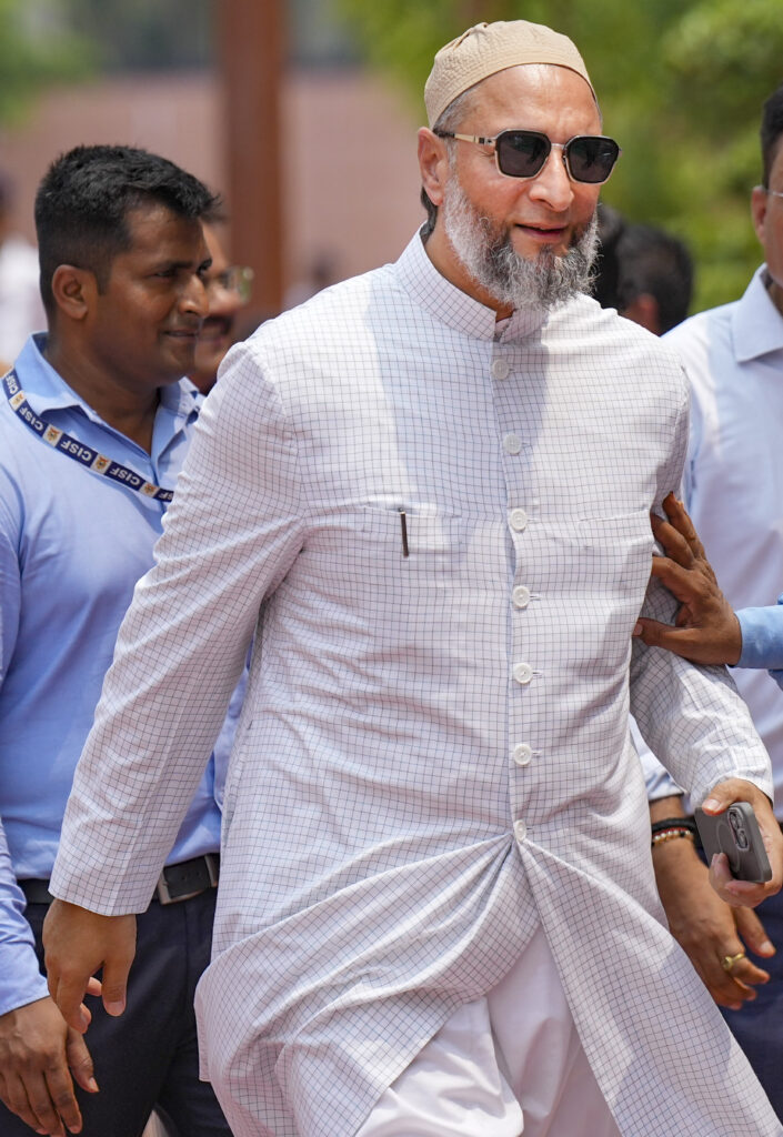 New Delhi: AIMIM MP Asaduddin Owaisi arrives to attend the first day of the Parliament session, in New Delhi, Monday, July 22, 2024. (PTI Photo/Manvender Vashist Lav)