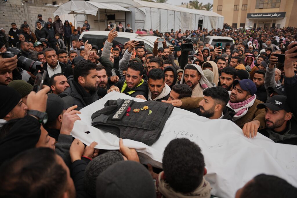 Mourners on Thursday, January 22, wept over the bodies of the dead journalists, whose bodies were covered in body bags and had press vests placed on their chests. Funeral prayers were held later.