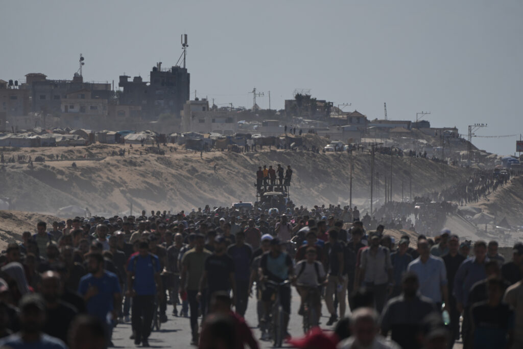 Tens of thousands of people who had gathered in Wadi Gaza in central Gaza started walking north after the Israeli military’s announcement at noon local time.