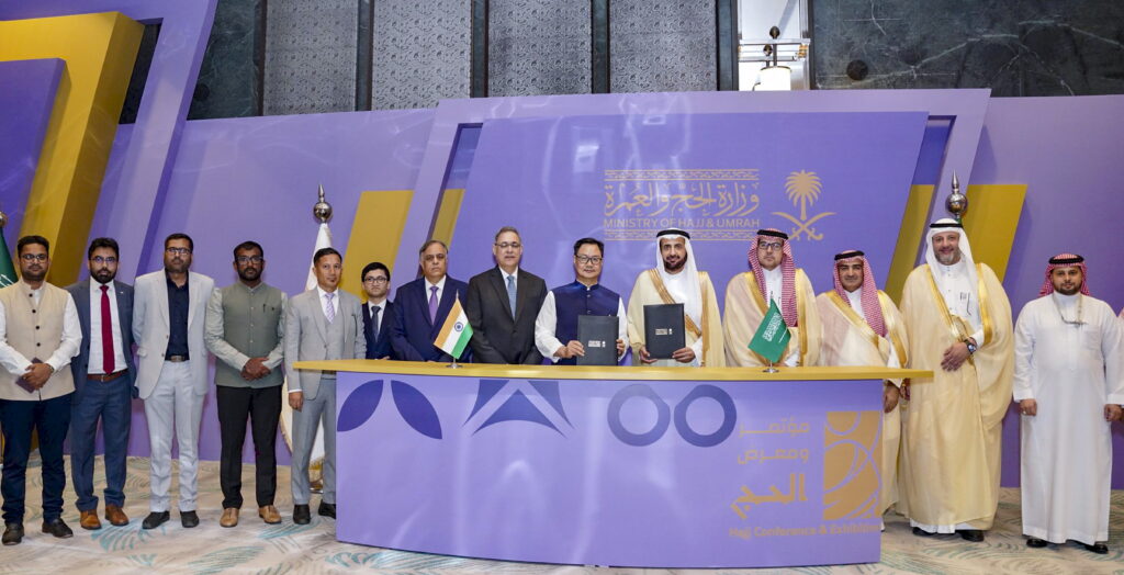 **EDS: THIRD PARTY IMAGE** In this image posted on Nov. 9, 2025, Union Minister of Parliamentary Affairs Kiren Rijiju with Saudi Arabia Minister of Hajj and Umrah Tawfiq bin Fawzan Al Rabiah during a meeting, in Saudi Arabia. (@KirenRijiju/X via PTI Photo)(PTI11_09_2025_000387A)**EDS: THIRD PARTY IMAGE** In this image posted on Nov. 9, 2025, Union Minister of Parliamentary Affairs Kiren Rijiju with Saudi Arabia Minister of Hajj and Umrah Tawfiq bin Fawzan Al Rabiah during the signing of Bilateral Haj Agreement, in Saudi Arabia. Haj Quota of 175,025 has been secured for Indian Pilgrims for 2026. (@KirenRijiju/X via PTI Photo)(PTI11_09_2025_000388A)**EDS: THIRD PARTY IMAGE** In this image posted on Nov. 9, 2025, Union Minister of Parliamentary Affairs Kiren Rijiju with Saudi Arabia Minister of Hajj and Umrah Tawfiq bin Fawzan Al Rabiah during a meeting, in Saudi Arabia. (@KirenRijiju/X via PTI Photo)(PTI11_09_2025_000379B)**EDS: THIRD PARTY IMAGE** In this image posted on Nov. 9, 2025, Union Minister of Parliamentary Affairs Kiren Rijiju with Saudi Arabia Minister of Hajj and Umrah Tawfiq bin Fawzan Al Rabiah during a meeting, in Saudi Arabia. (@KirenRijiju/X via PTI Photo)(PTI11_09_2025_000387A)**EDS: THIRD PARTY IMAGE** In this image posted on Nov. 9, 2025, Union Minister of Parliamentary Affairs Kiren Rijiju with Saudi Arabia Minister of Hajj and Umrah Tawfiq bin Fawzan Al Rabiah during the signing of Bilateral Haj Agreement, in Saudi Arabia. Haj Quota of 175,025 has been secured for Indian Pilgrims for 2026. (@KirenRijiju/X via PTI Photo)(PTI11_09_2025_000382B)