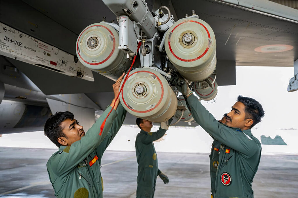 Pokhran: Indian Air Force personnel during preparations for the upcoming ‘Vayu Shakti 2024’ exercise. (PTI Photo)Pokhran: Indian Air Force’s Rafale aircraft on a practice sortie during preparations for the upcoming ‘Vayu Shakti 2024’ exercise. (PTI Photo)Pokhran: Indian Air Force personnel during preparations for the upcoming ‘Vayu Shakti 2024’ exercise. (PTI Photo)