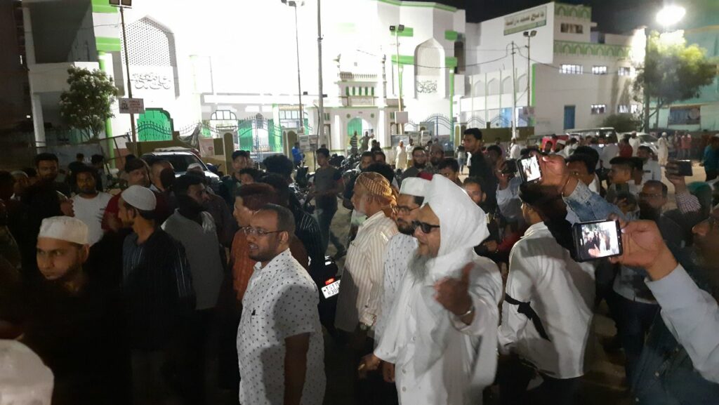 After Isha prayer on June 9, a protest was held at Darulshifa ground, Hyderabad over the remarks against Prophet Mohammed.