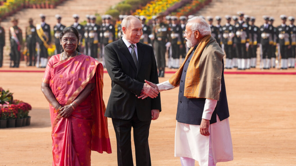 President Droupadi Murmu and Modi warmly welcomed the Russian president at the forecourt of the majestic Rashtrapati Bhavan, a day after the prime minister hosted the Russian leader for a private dinner.