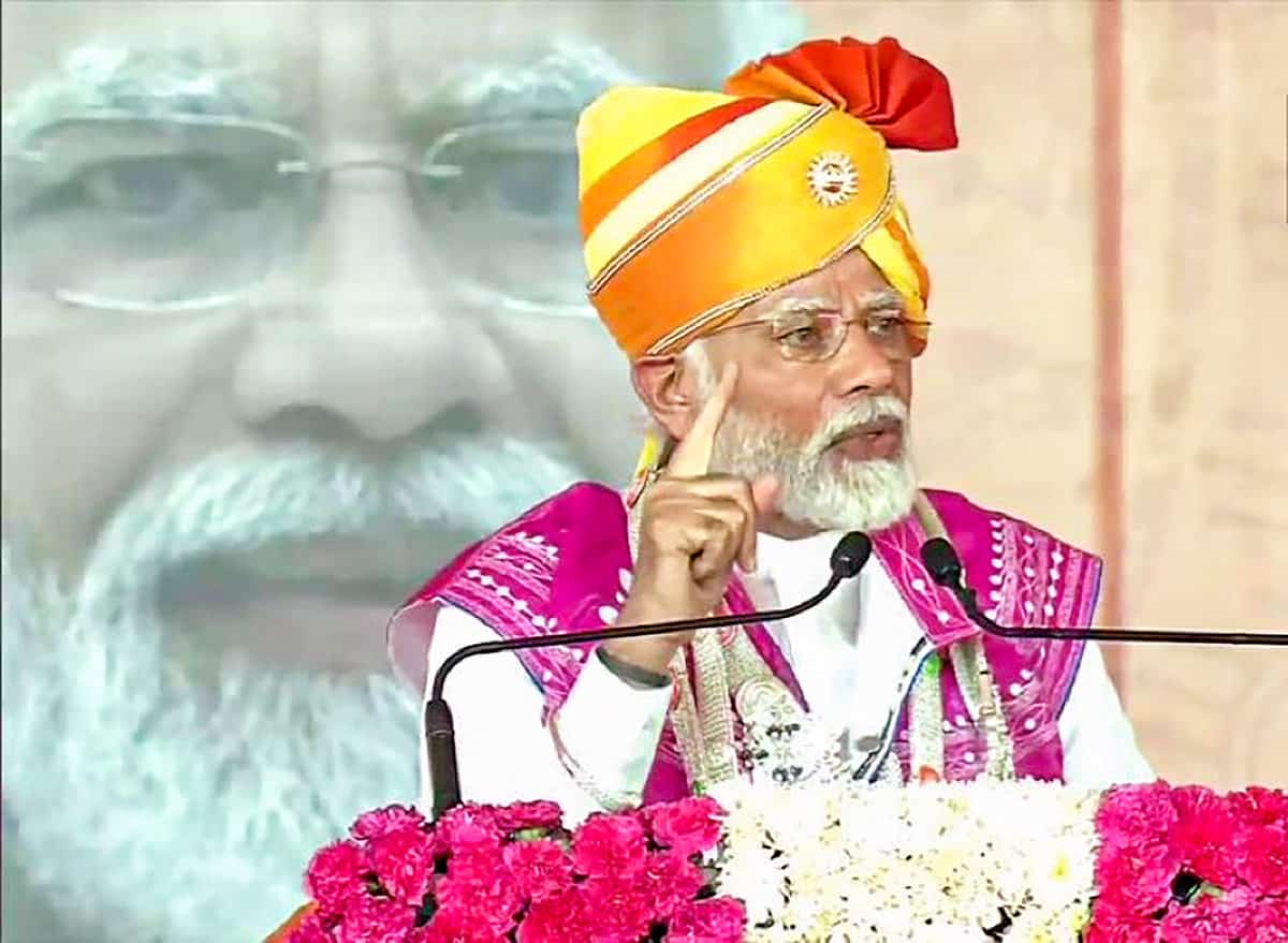 Dahod: Prime Minister Narendra Modi addresses the launch of multiple development projects in Dahod. (PTI Photo)