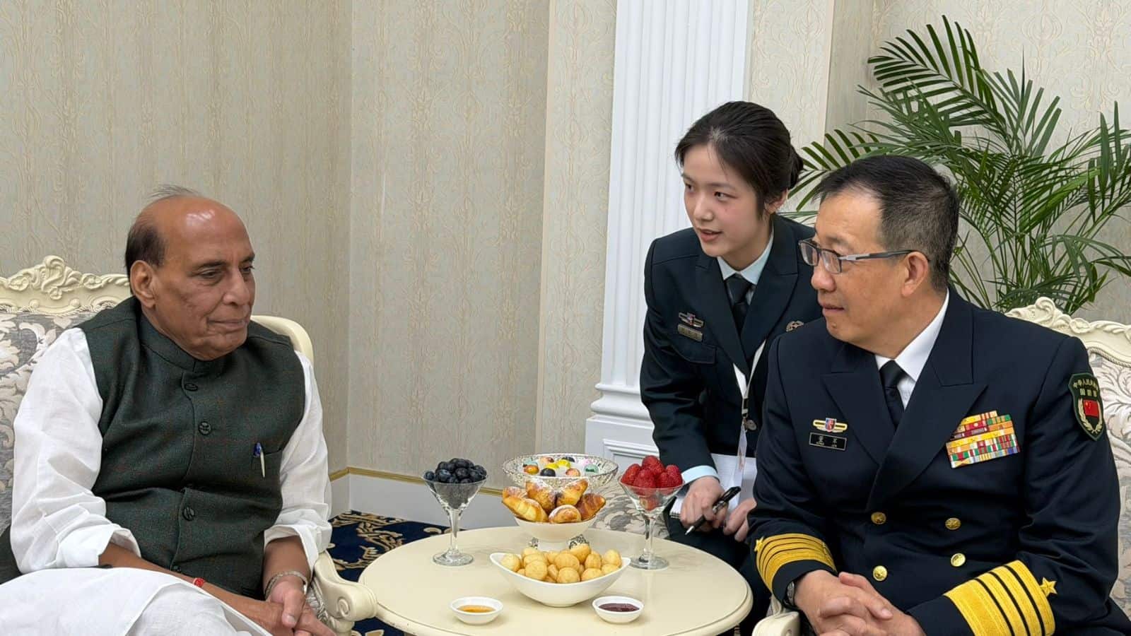 New Delhi: Defence Minister Rajnath Singh met his Chinese counterpart Admiral Dong Jun in Bishkek to discuss maintaining peace and tranquillity along the Line of Actual Control (LAC) and broader regional security concerns including the West Asia crisis.