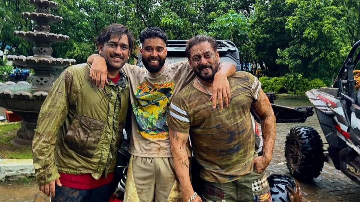 In the picture, Salman Khan, MS Dhoni and AP Dhillon are seen covered in mud after enjoying an all-terrain vehicle (ATV) ride around the farmhouse premises.