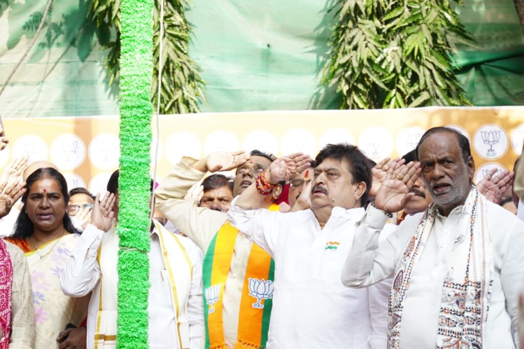 Telangana Bharatiya Janata Party (BJP) President N Ramchander Rao hoisted the national flag at the BJP state party office in Nampally here and addressed party workers.