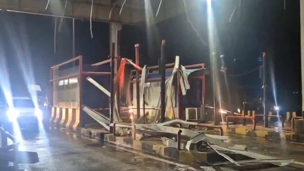 Hyderabad: The roof of the toll gate at Duddeda Toll Gate, located on the highway in Telangana’s Siddipet district, collapsed on Sunday evening, May 4, due to heavy rains and strong winds.