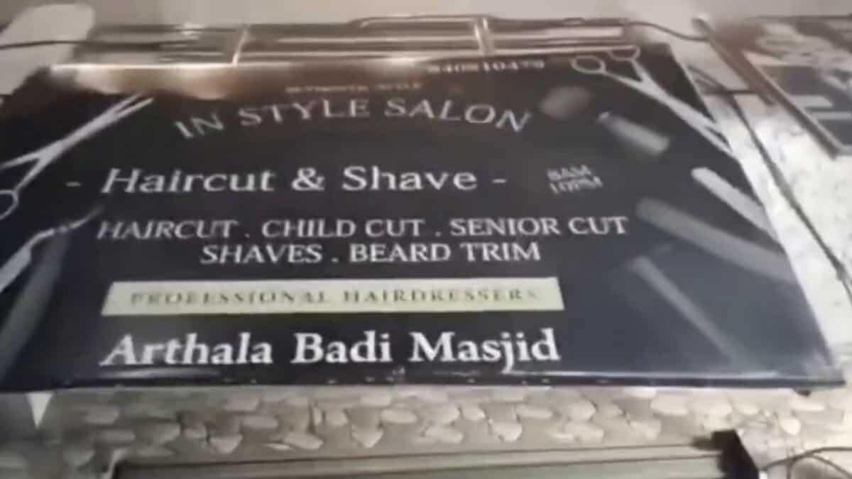 A video of the incident, which emerged on social media on January 13, shows a large crowd gathered outside the salon chanting “Jai Shree Ram.” A Hindu Raksha Dal member, identified as Deepak, is seen approaching the salon and asking, “You have made the board, but you haven’t written your name, haven’t you paid money for the board?”