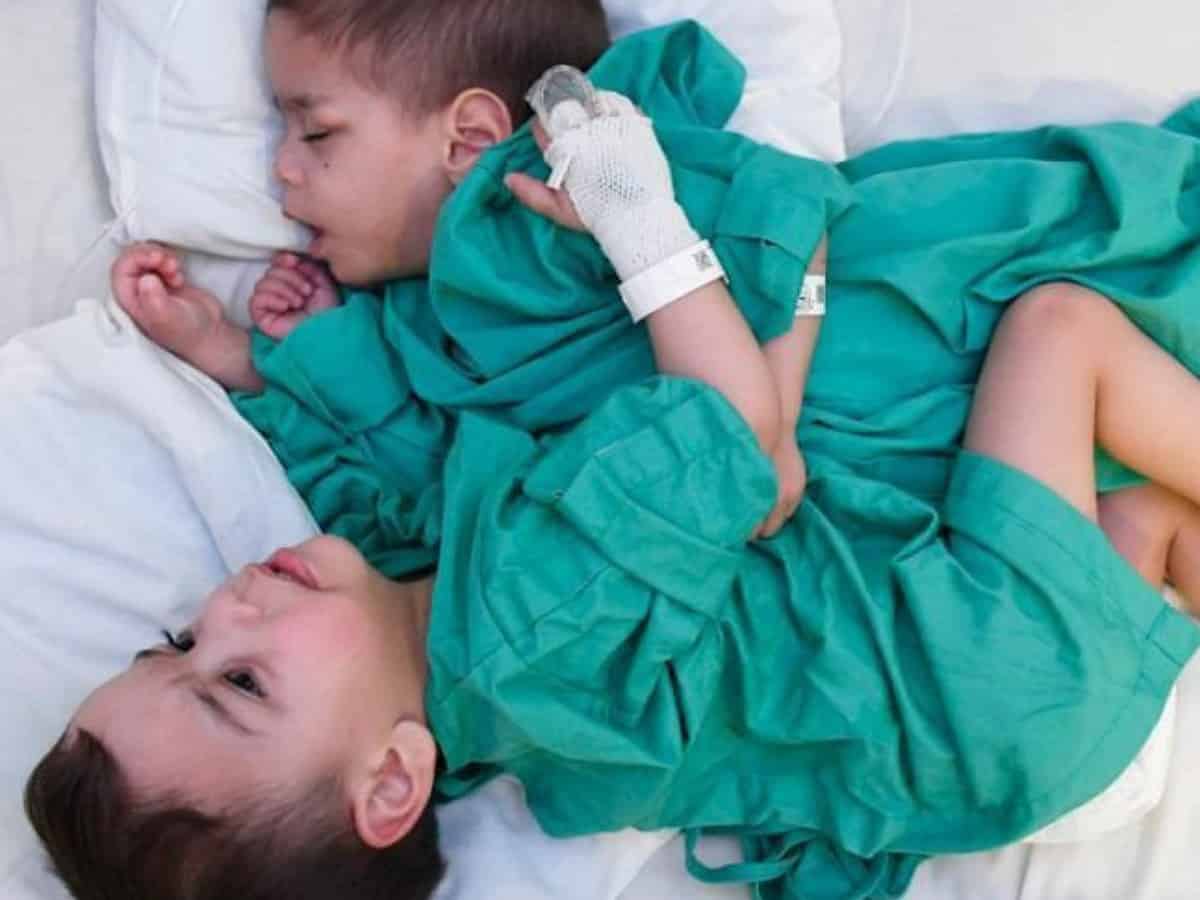 The two years and seven months old Syrian twins— Ihsan and Bassam, who combined weigh 19kg shared lower chest, abdomen, liver, and intestine areas.