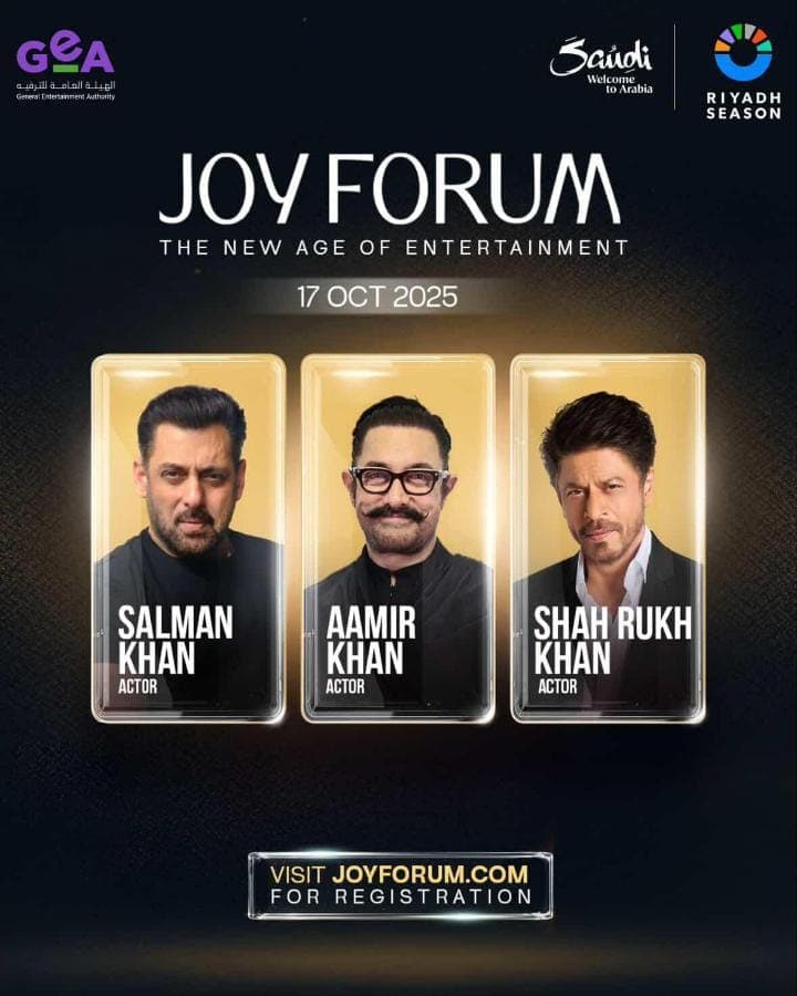 Now, the three Khans are ready to share the same platform again at Joy Forum 2025, happening on October 16-17 in Riyadh under the patronage of His Excellency Turki Alalshikh, Chairman of the General Entertainment Authority (GEA).