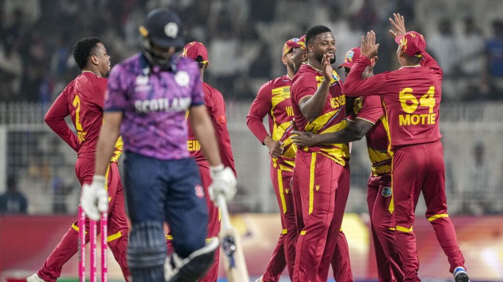 Kolkata: Shimron Hetmyer struck a counter-attacking fifty before Romario Shepherd unleashed a stunning five-wicket burst, including a hat-trick, as two-time champions West Indies began their T20 World Cup campaign with a comfortable 35-run win over Scotland in their group C fixture here on Saturday.