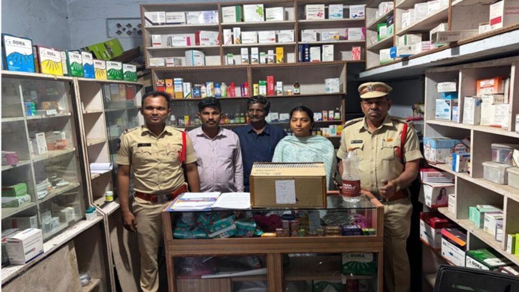 Officials raided Sri Laxmi Ganapathi Medical and General Stores in Maripeda village.