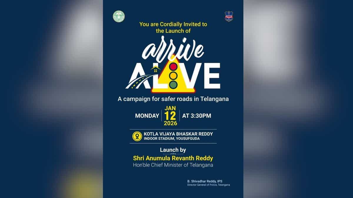 Hyderabad: Telangana police will be launching a road safety campaign ‘Arrive Alive’ from January 12 with an aim to reduce the road accidents in the state.