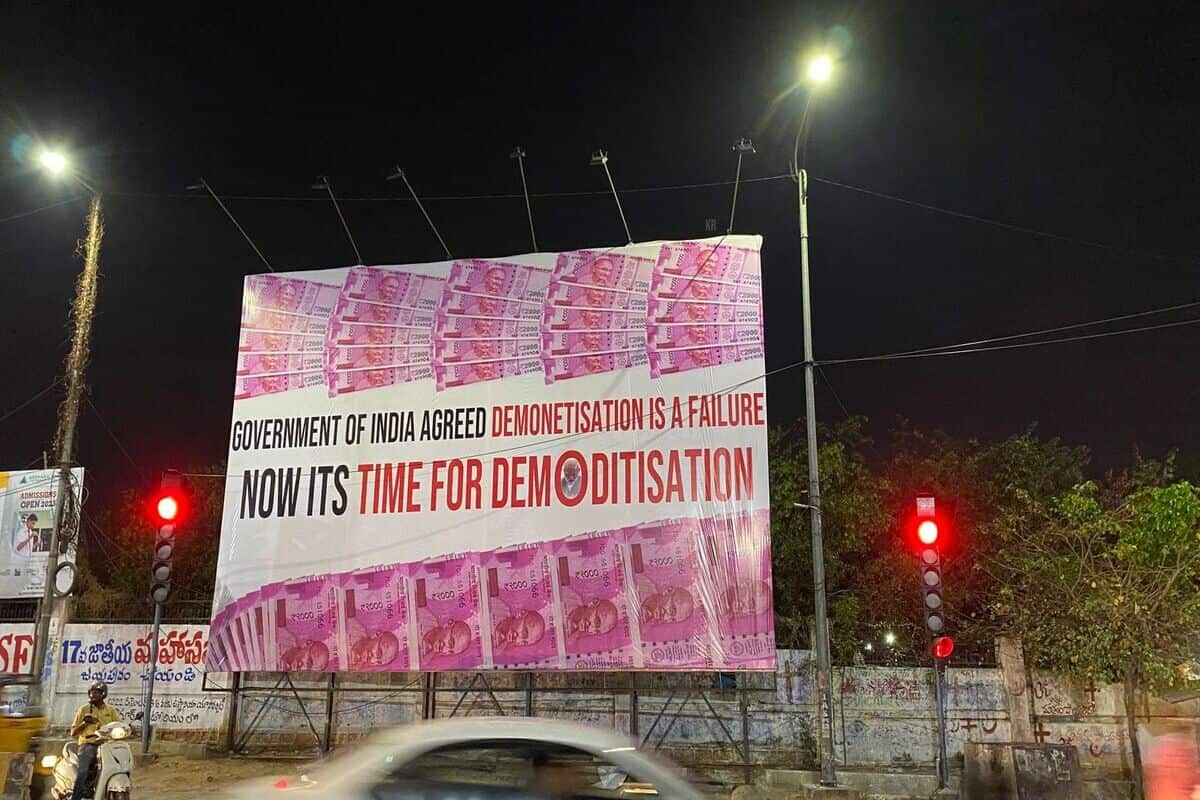 “Government of India agreed that demonetisation is a failure. It’s now time for Demoditisation,” the poster read.