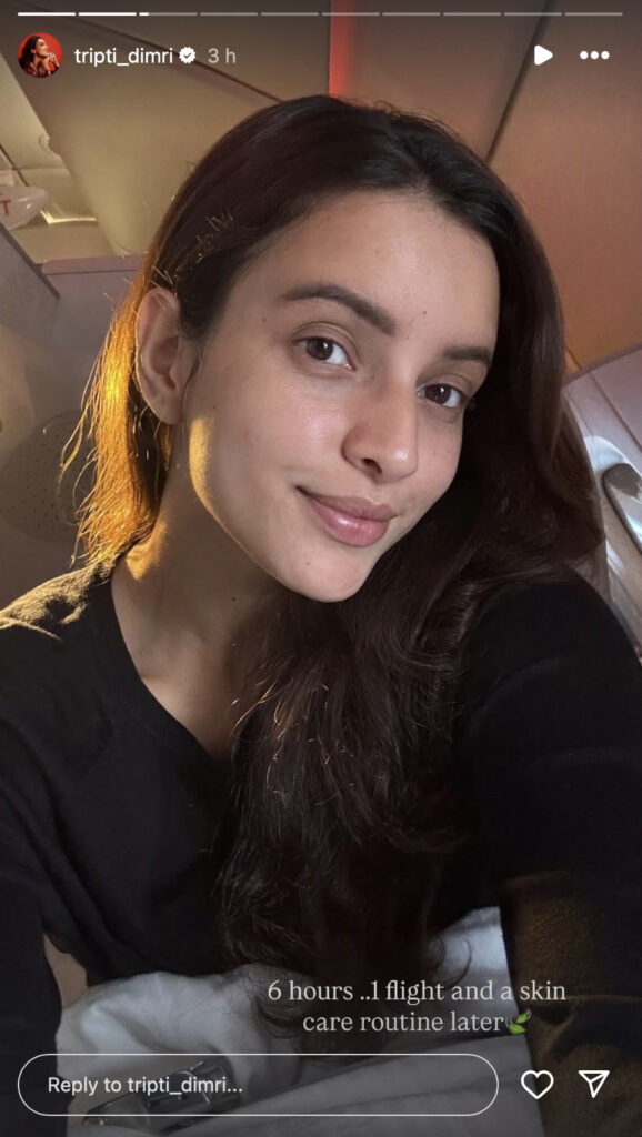 The first was a glimpse of her onboard a flight and wrote: “6 hours..1 flight and a skin care routine later.”