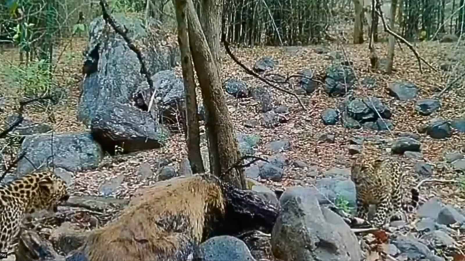 The latest footage shows the two animals near the carcass of a creature, weeks after the department had released an earlier clip of a leopard alongside its cubs in the same area.
