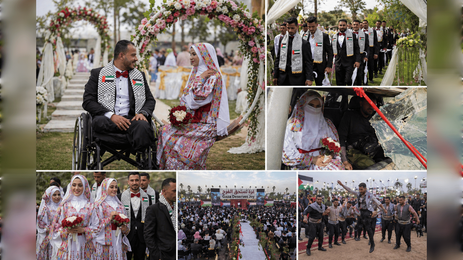 Thousands gathered to witness one of the largest wedding events held in Gaza in recent years. Families, local figures and aid representatives attended the celebration, which featured Palestinian cultural performances, music and traditional dabke dancing.