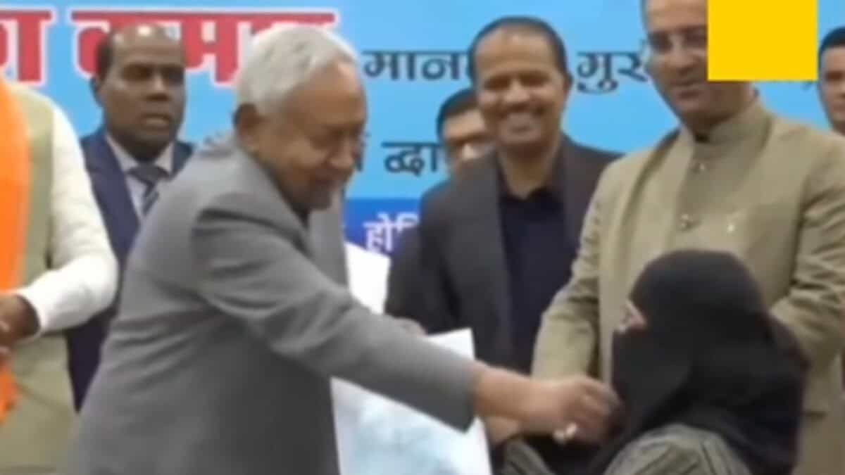 Patna: Bihar chief minister Nitish Kumar pulled the niqab or the face covering of a Muslim woman while distributing appointment letters to newly recruited Ayush doctors, shocking people, including his deputy, Samrat Chaudhary.