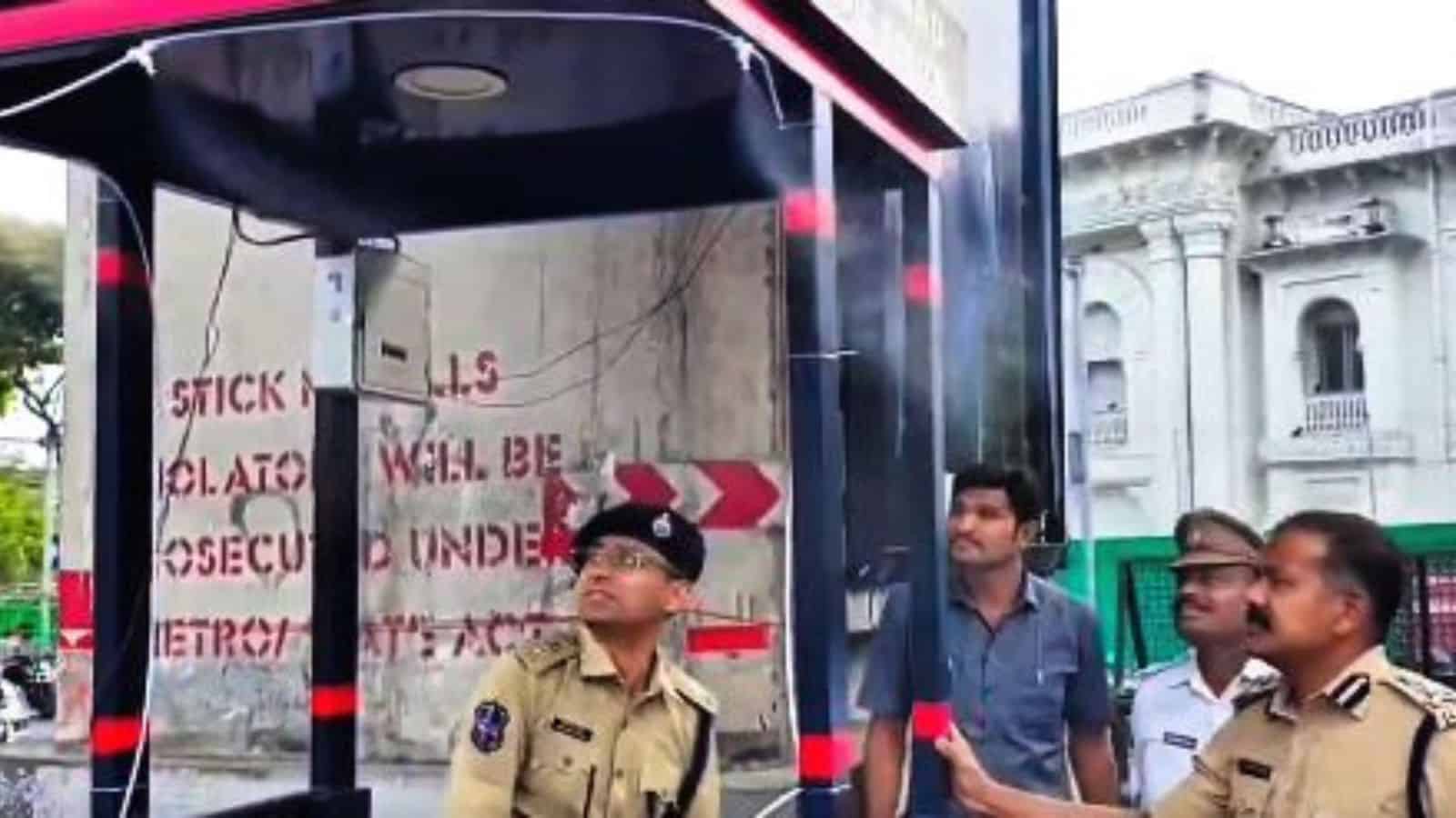 Hyderabad: The Hyderabad traffic police on Tuesday, April 21, installed mist fans at some junctions for on-duty staff amid rising heat.