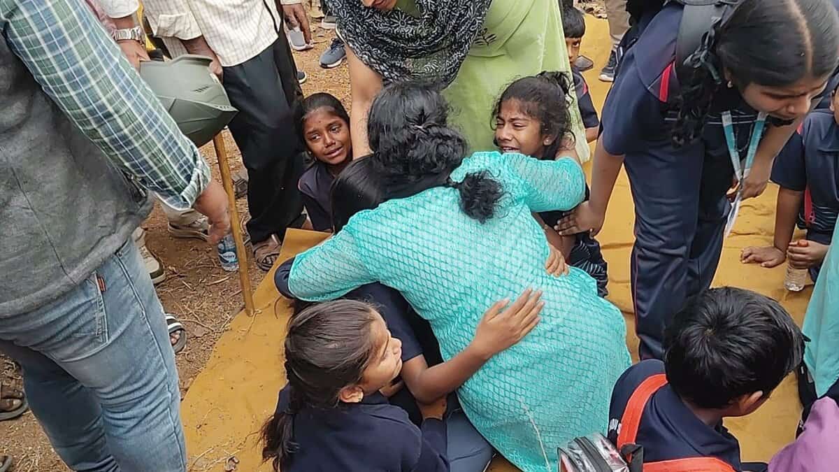 Hyderabad: A private school bus going from Hyderabad to Moinabad on Wednesday, January 28, overturned after hitting a divider near Mrugavani National Park, causing injuries to several students.