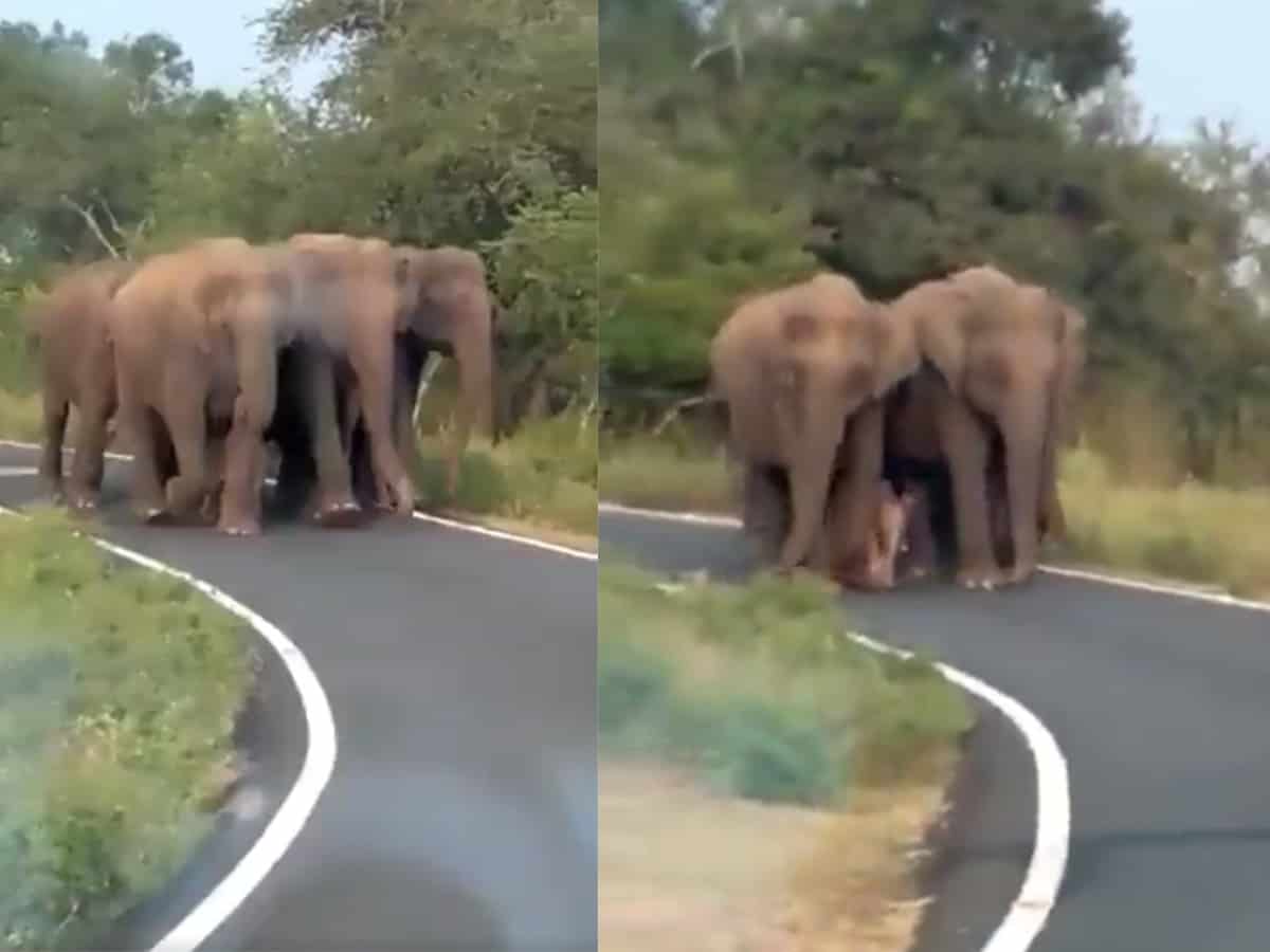 The viral video was shared by an IFS Officer Susanta Nanda, who captioned the video, “No body on earth can provide better security than an elephant herd to the cute newborn baby. It’s Z+++. Said to be from Sathyamangalam Coimbatore road.”