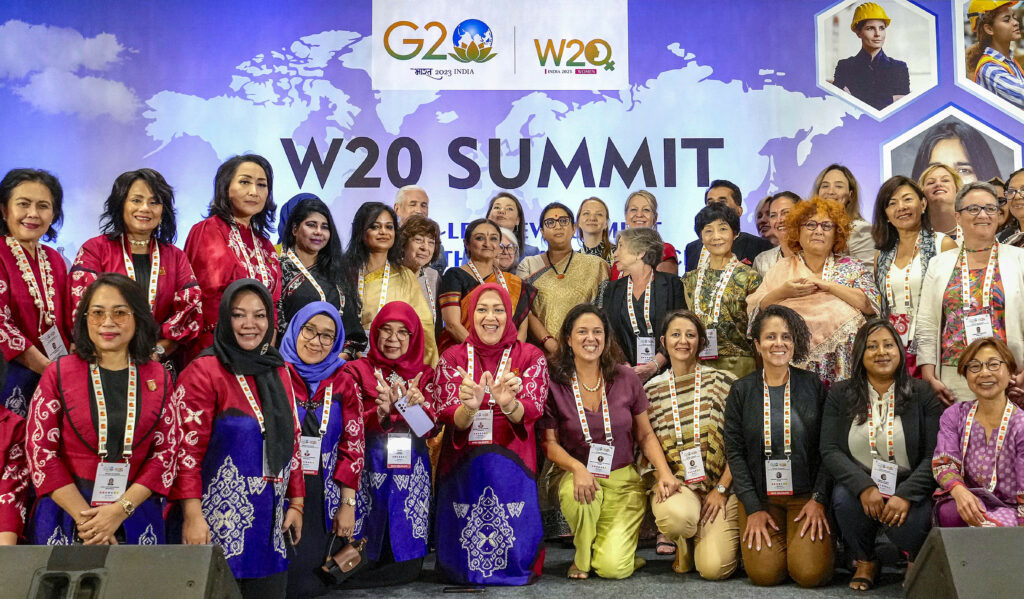 Mamallapuram: Union Minister for Women and Child Development Smriti Irani with delegates at the W20 Summit Women-Led Development, in Mamallapuram, Thursday, June 15, 2023. (PTI Photo/R Senthil Kumar)