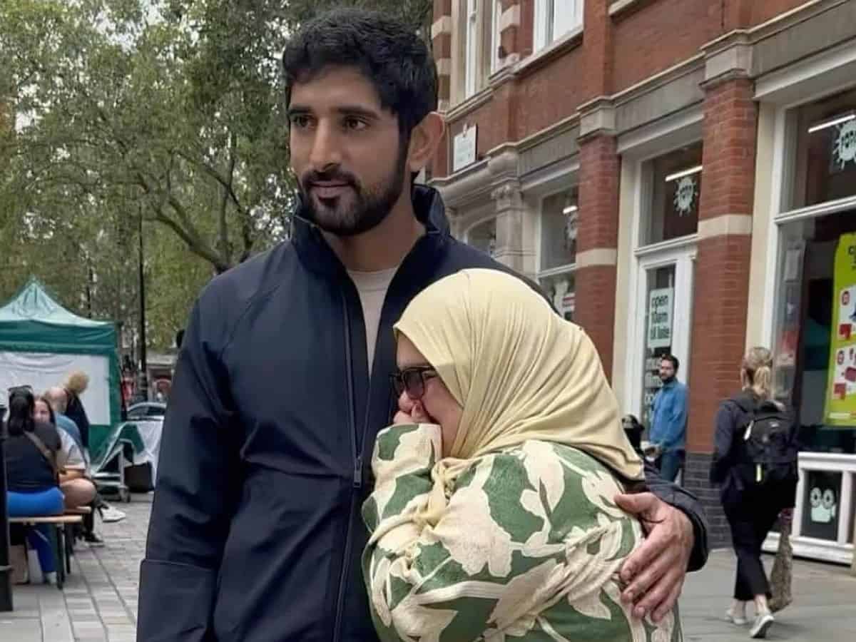 The 23-second video clip was posted on Instagram by Ahmed Jaber Al Harbi, a close friend of Sheikh Hamdan. The Crown Prince is seen comforting the emotional woman while taking a picture.