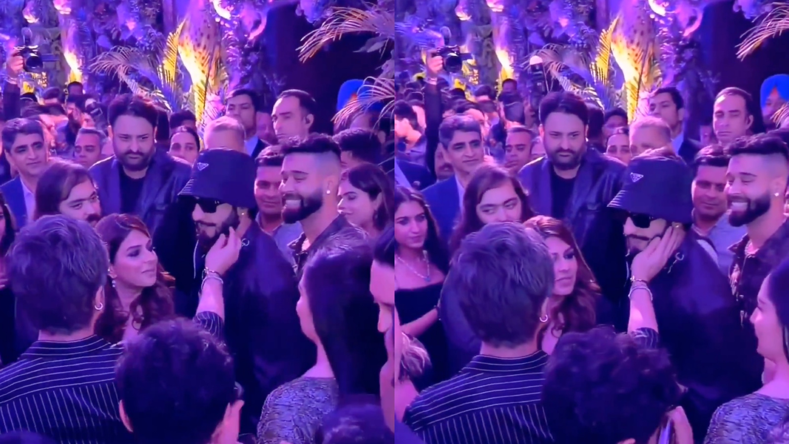 In a viral video, Ranveer is seen interacting with guests when Shah Rukh approaches him. SRK gently taps Ranveer on the shoulder and affectionately touches his cheek. His manager Pooja Dadlani also greets Ranveer warmly.
