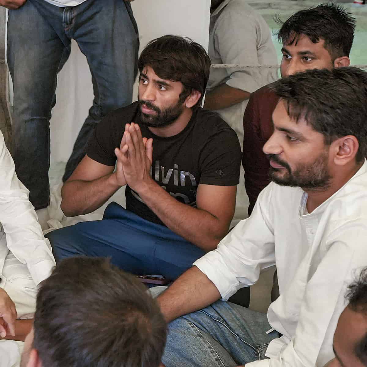 New Delhi: Wrestler Bajrang Punia during the wrestlers' protest against Wrestling Federation of India (WFI) chief Brij Bhushan Sharan Singh, at Jantar Mantar, in New Delhi, Wednesday, May 24, 2023. (PTI Photo/Kamal Kishore)