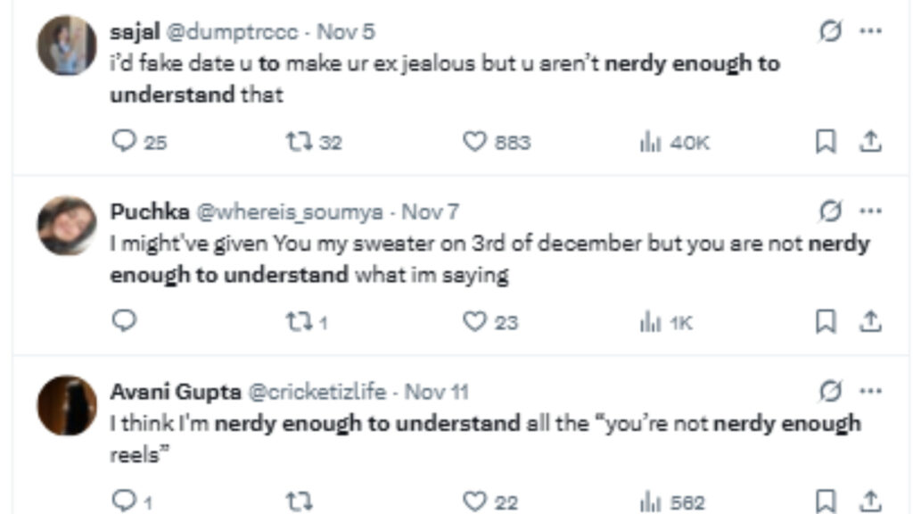Pick a niche reference, pair it with ‘but you’re not nerdy enough to understand that’, and post it in reel, meme, or image format, and you have successfully joined the trend.